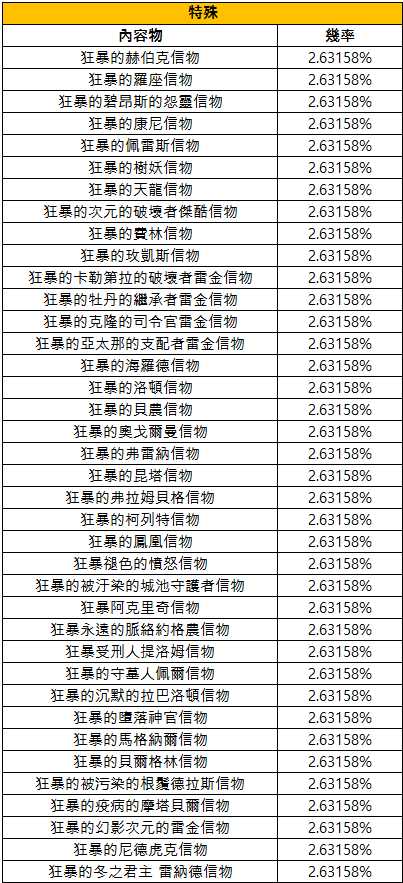 - 登陸 特殊 等級怪物信物時,隨機屬性獲得的機率