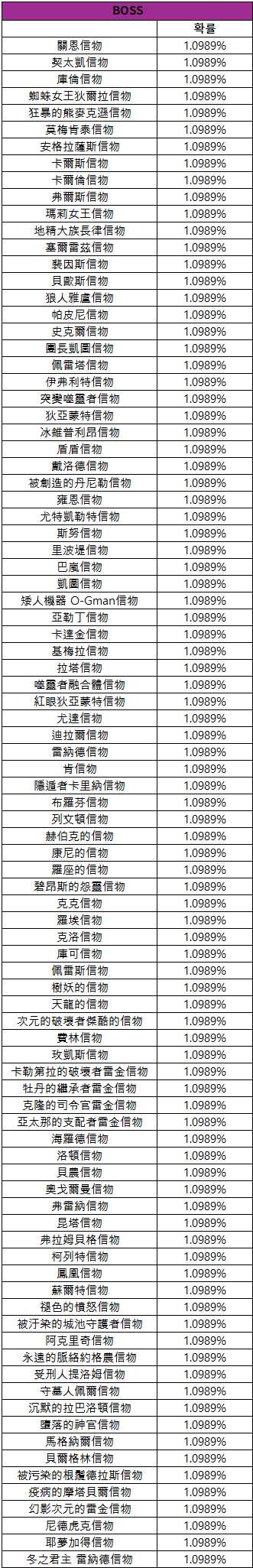 - 登陸 一般/精英/BOSS 等級怪物信物時,隨機屬性的獲得機率