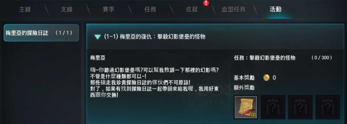 b. 每日完成活動任務時可以獲得幻影堡壘探險日誌 (活動).