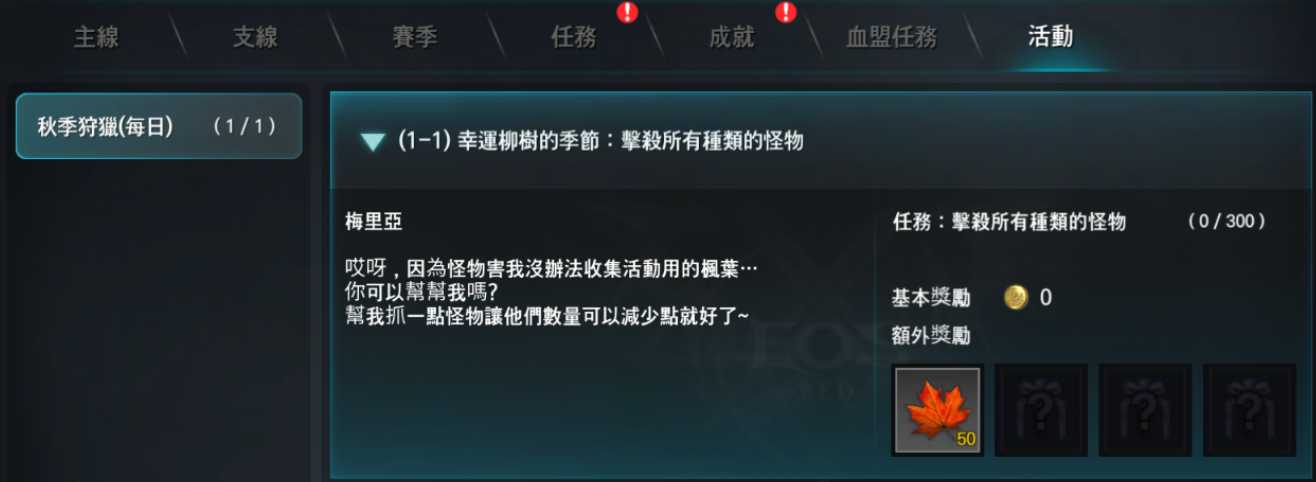 a. 每日完成活動任務時可獲得紅色楓葉(活動)。