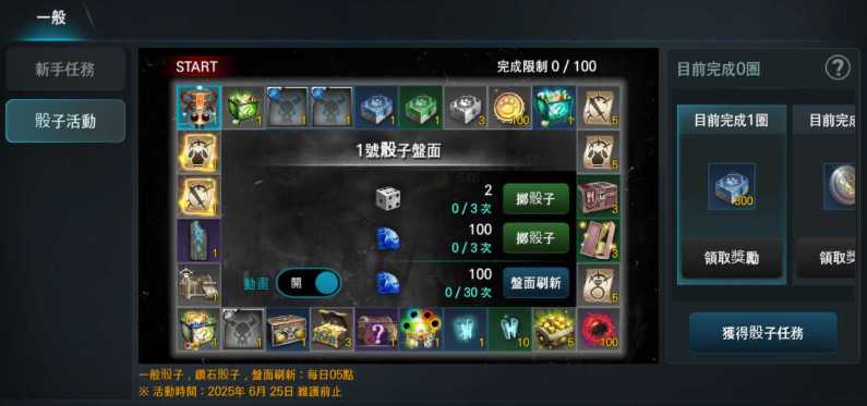 a. 完成骰子盤面1輪後,將自動更新骰子盤面