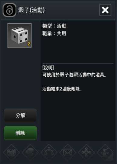 c. 每日骰子任務完成時,可獲得骰子(活動)道具