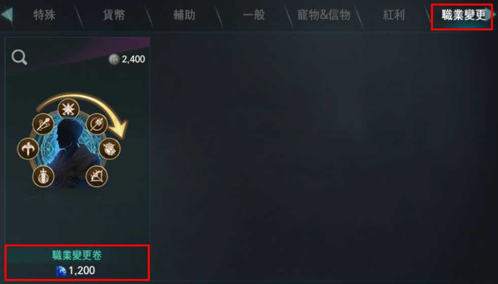 - 可於【商店 > 職業變更】選單中購買職業變更券。