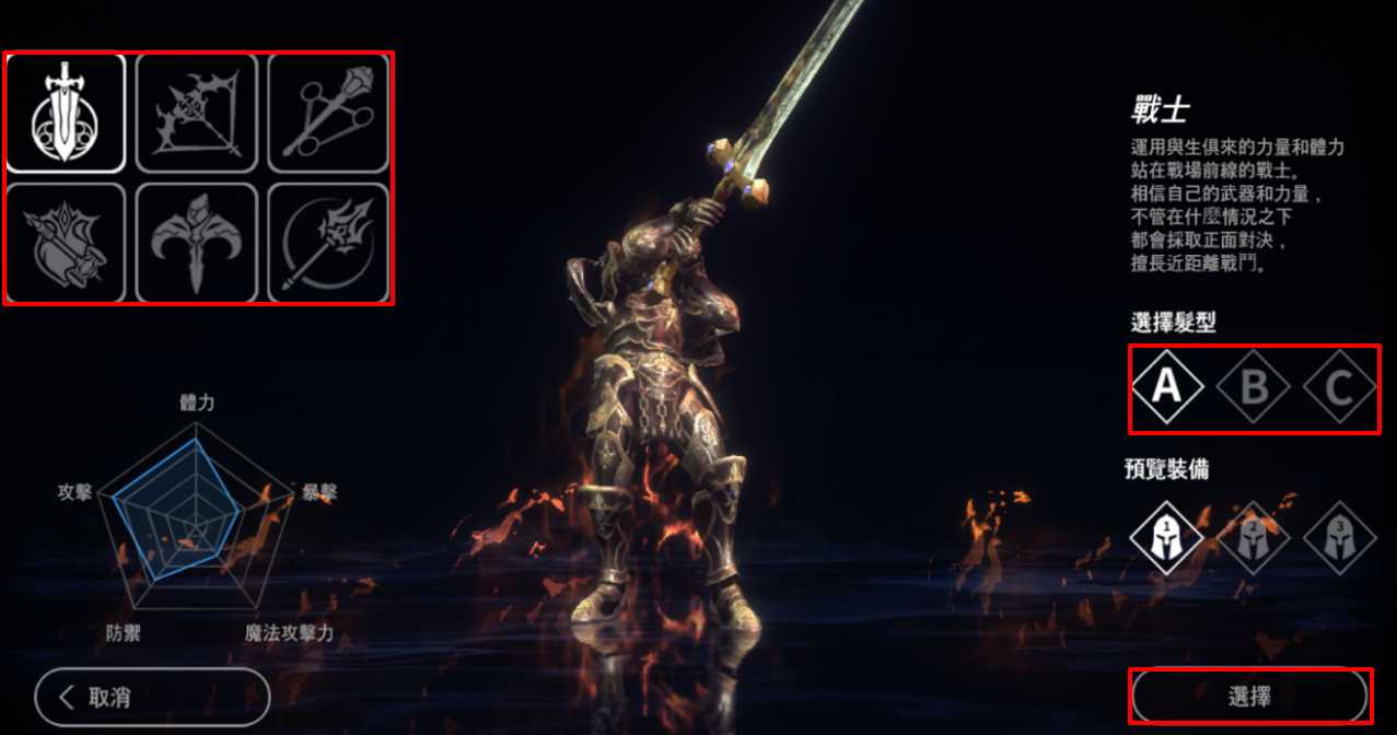 4. 設定欲變更的職業與髮型後,點擊【選擇】按鈕,即可選定變更職業。