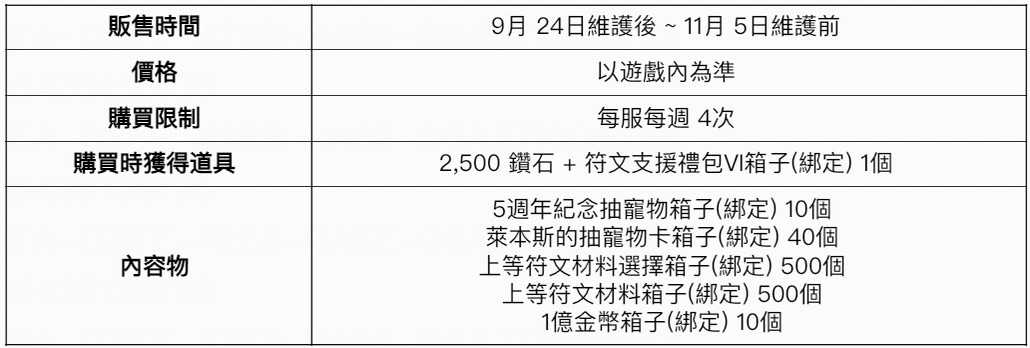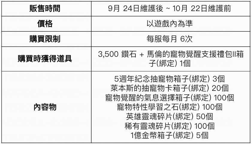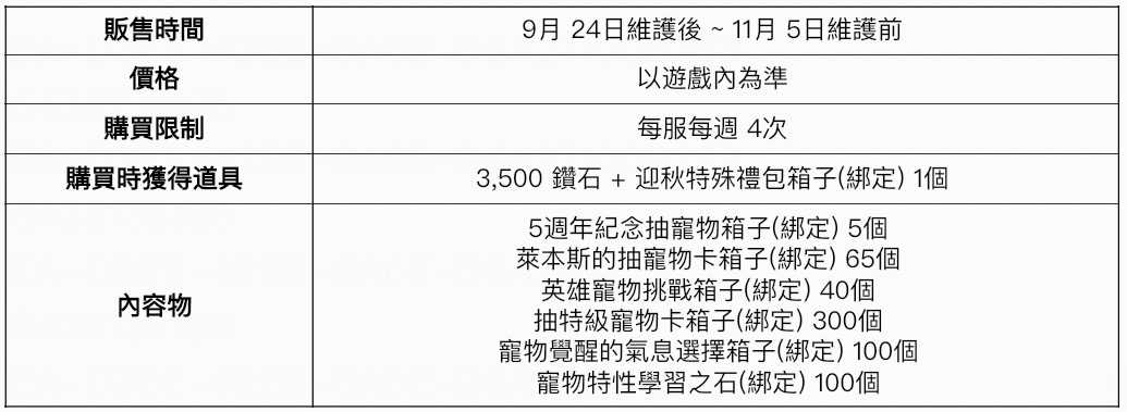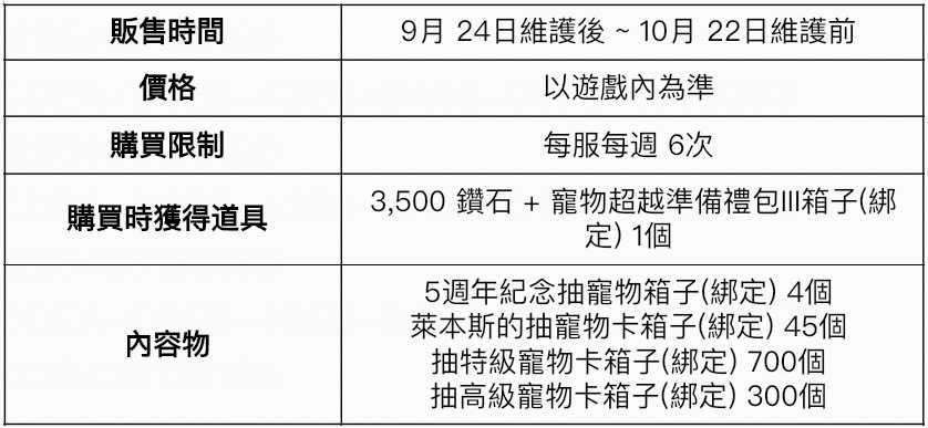 * 使用5週年紀念抽寵物套組箱子(綁定)時,可獲得5週年紀念抽寵物箱子(綁定) 3個。