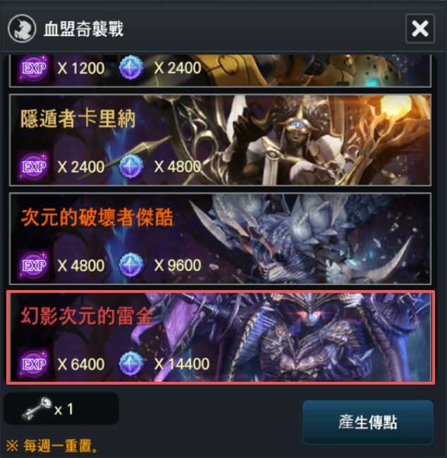 1. 新增血盟奇襲戰[幻影次元的遺跡]