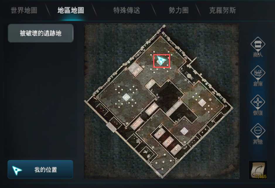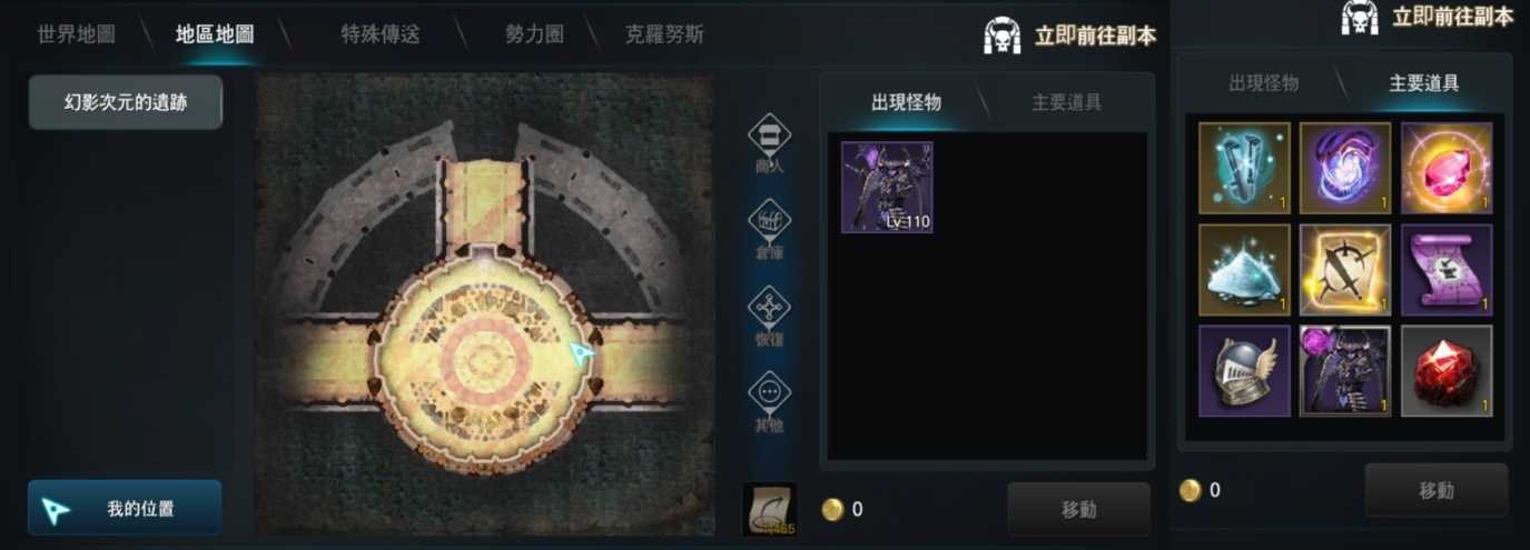 - 幻影次元的遺跡地圖,出現怪物與主要道具資訊
