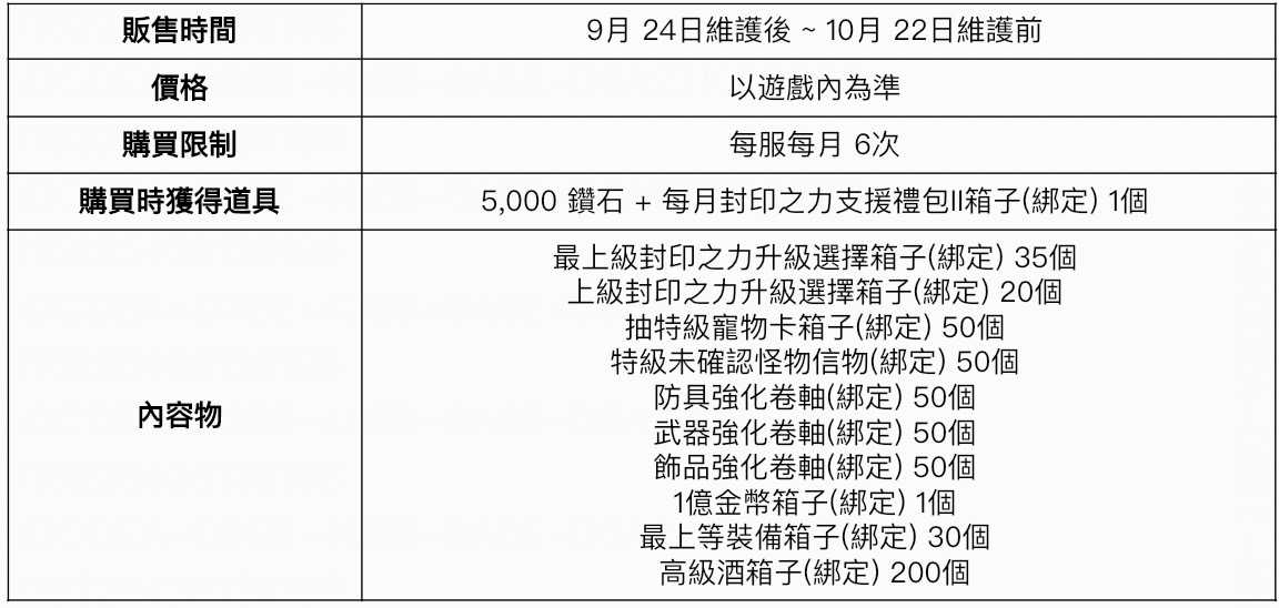 - 更新後首次登入時,將額外獲得與原本持有的封印之力效果相同的預設。