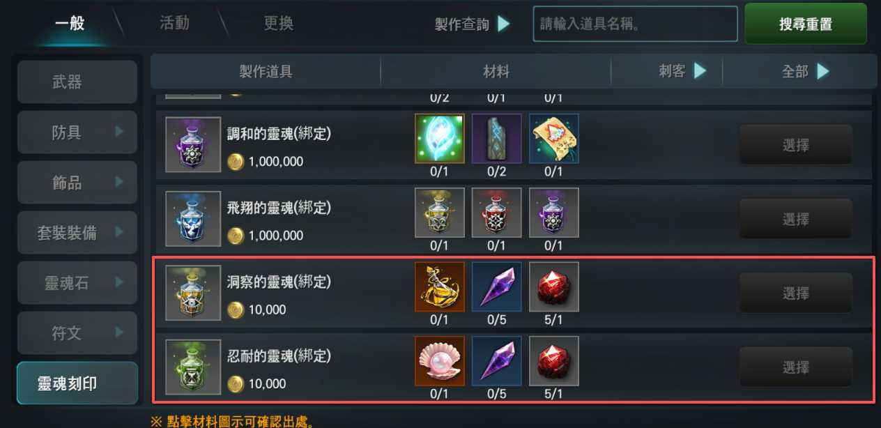 3. 新增洞察的靈魂與忍耐的靈魂製作公式