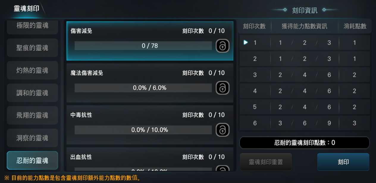 - [選單 > 靈魂刻印] 中新增「忍耐的靈魂」。
