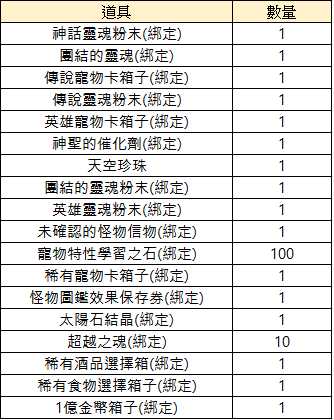 *使用傳說寵物卡3入套組箱子(綁定)時,可獲得傳說寵物卡箱子(綁定) 3個