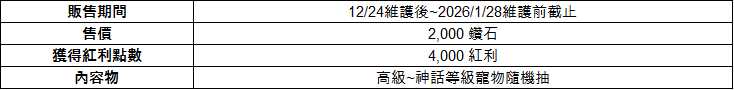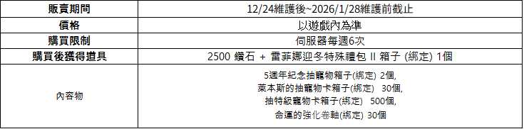 - 以下禮包商品的販售期間將延長,開放購買至 2026 年 1 月 28 日維護前為止。