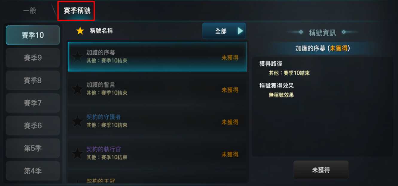 - 賽季稱號將移動至 [稱號 > 賽季稱號] 項目中顯示。
