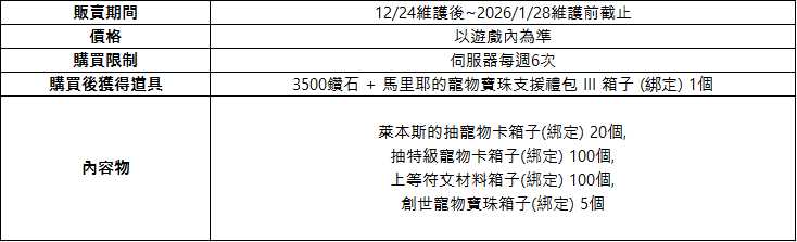 [馬里耶的寵物寶珠支援禮包 III]