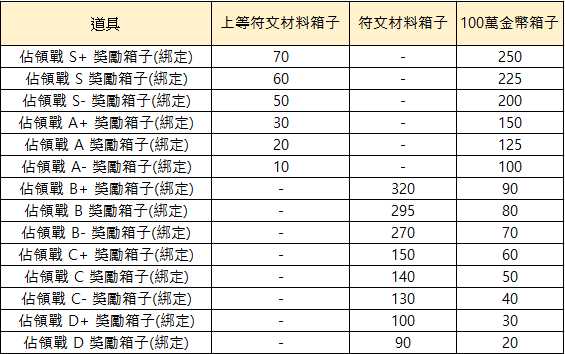 - 佔領戰等級獎勵箱子內容物如下表做變更