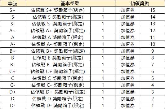 - 佔領戰等級獎勵如下表做變更