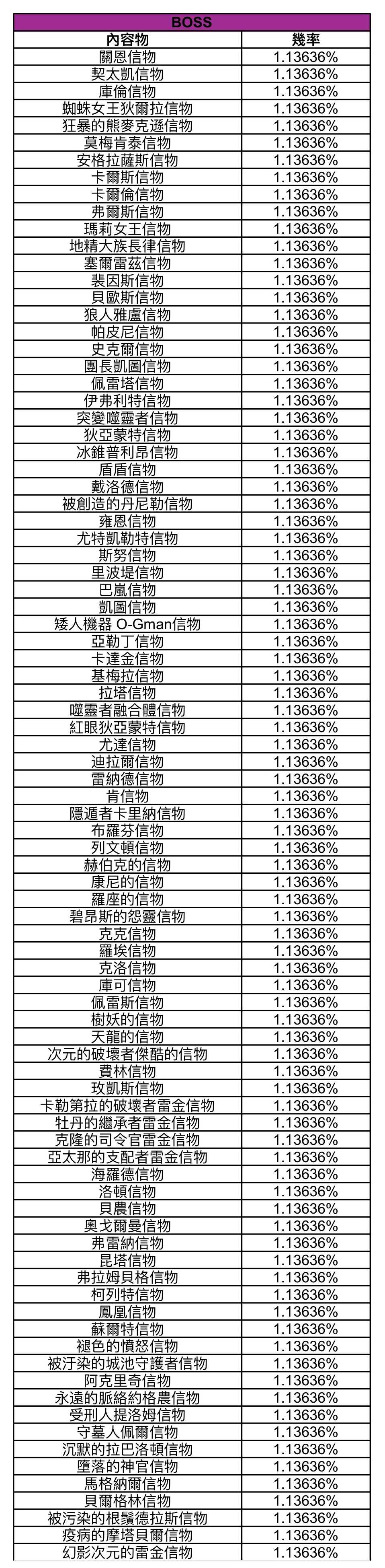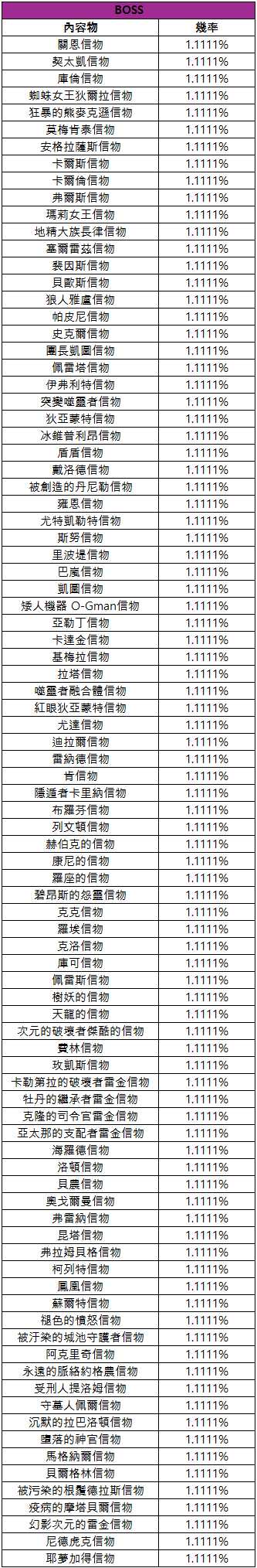 - 登陸 一般/精英/BOSS 等級怪物信物時,隨機屬性的獲得機率