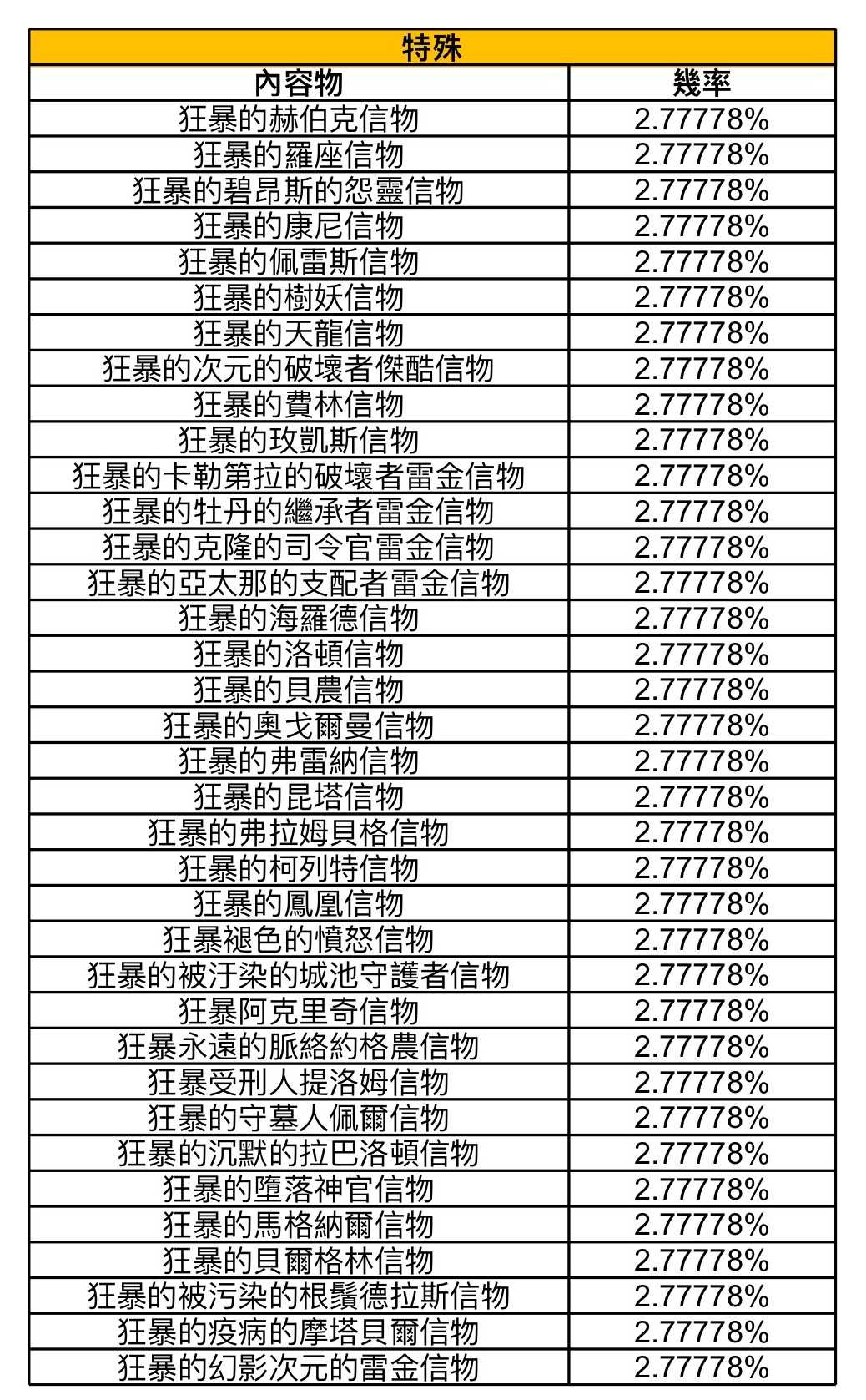 - 登陸 特殊 等級怪物信物時,隨機屬性獲得的機率