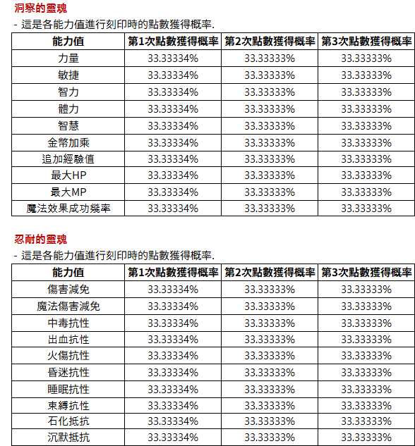 「靈境殺戮」-靈魂刻印能力值獲得點數機率