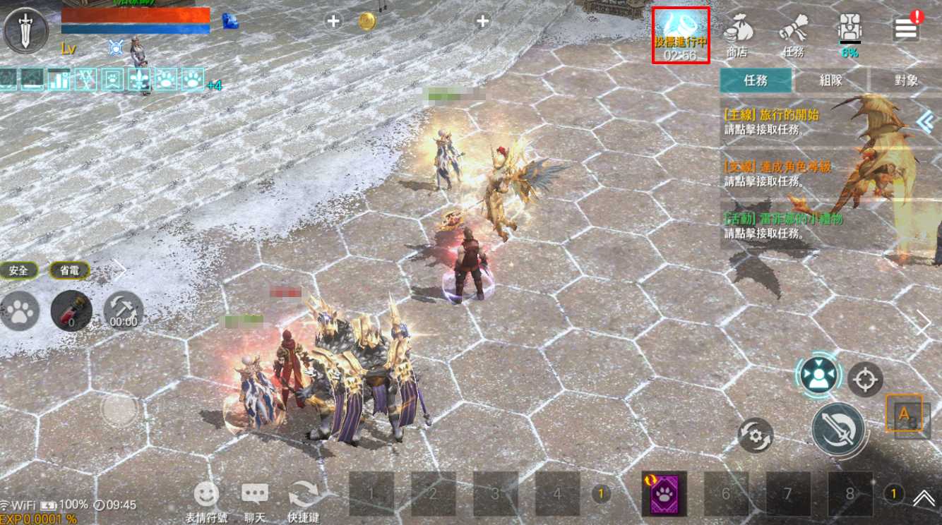 -進入時,角色將隨機分配至4個區域。自22:16起進行10分鐘的世界BOSS耶夢加得戰鬥。
