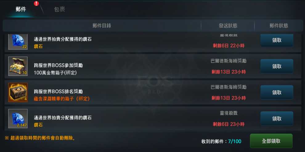 - 物品成功拍賣後,成交金額將平均分配給成功討伐世界BOSS耶夢加得的角色,並以郵件發送(得標者除外)。